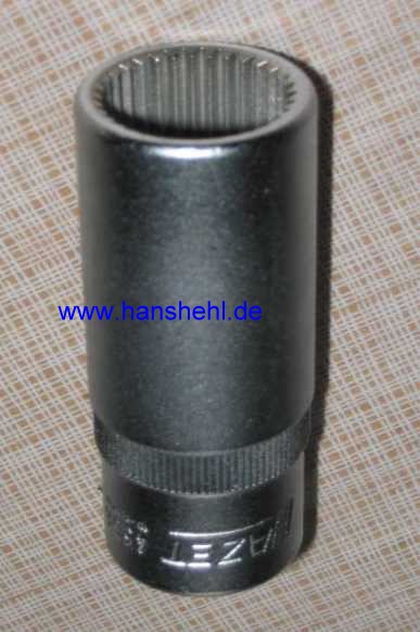 | Zum Lösen des Rohranschlusses an der Einspritzpumpe benötigt man einen Vielzahnschlüssel 17 x 20 von DC: W617589010900 (kostet 18,03 Euro ohne MwSt.) oder von Hazet: Nr. 4556 | ![]() |