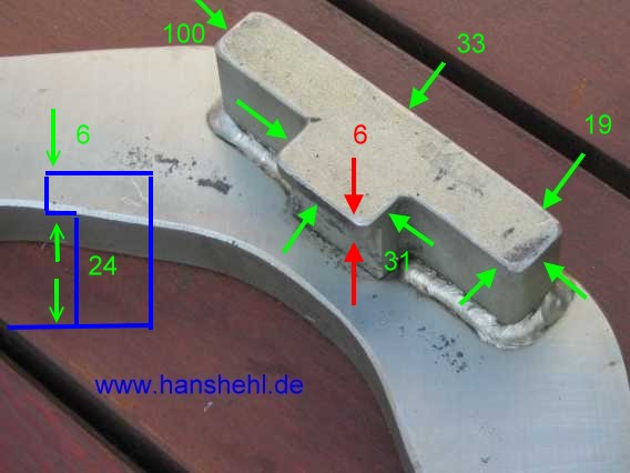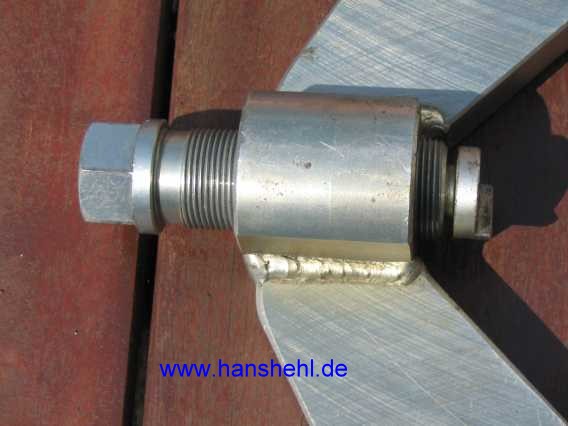 | Das Gewinde der Schraube (M24 Feingewinde 1.5, 27 mm Schlüsselweite, Durchmesser 24 mm ) ist 68 mm lang, 7 mm sind ohne Gewinde. Der drehbar gelagerte Druckpilz ist 6 mm lang, dazu kommt die Kante. | ![]() |