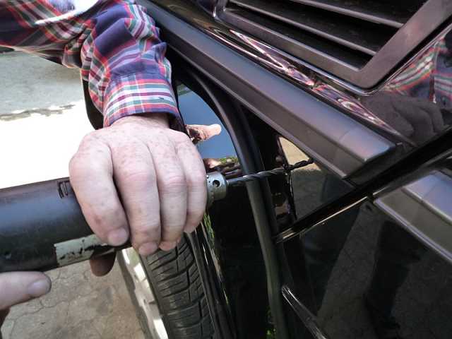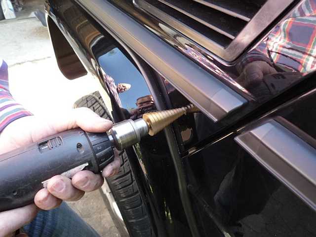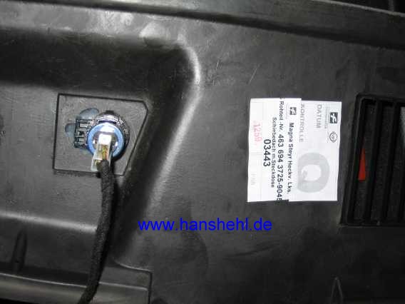 Eingebaut wird eine übliche Kfz-Steckdose für 16 A. Nach dem Ankörnen und Vorbohren wird mit einem Schälbohrer das 18 mm-Loch gebohrt. Gute Konservierung ist angesagt. Der Masseanschluss erfolgt über das Kotflügelblech. Kfz-Steckdose von Fa. Reichelt Schnellsuche "BST24" Stecker 15A: BST3 |