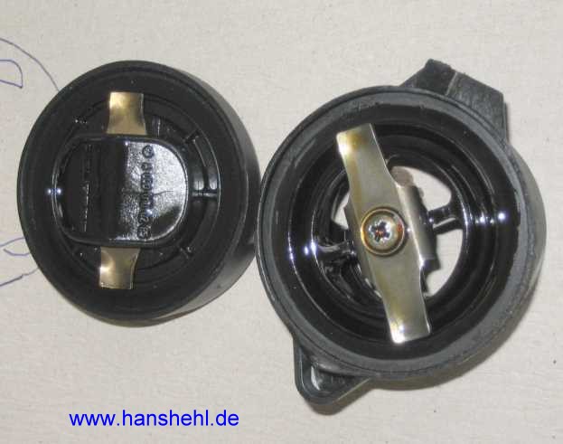 | Deckel abschrauben, alte Dichtungsmasse vorsichtig entfernen, Fläche entfetten, Dichtungsmasse dünn auftragen. |