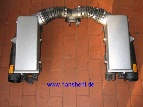 Der Abbau des Luftfiltersystems ist im tipp36-1.htm#b31 beschrieben. Es ist nur gesteckt und kann nach Abnehmen der beiden Ansaugwinkelrohre abgehoben werden. |