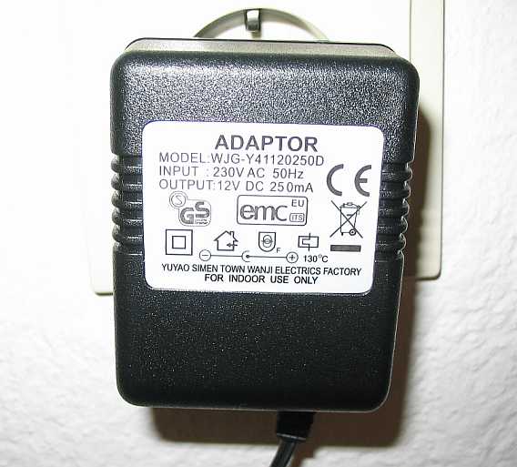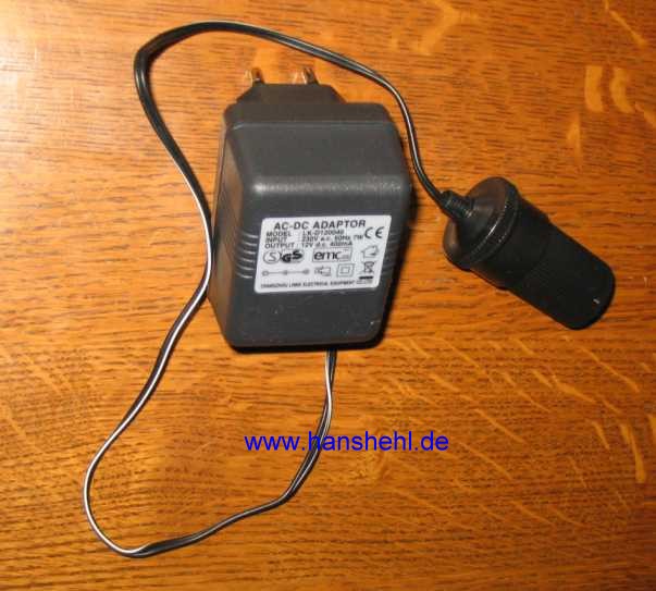 | Für die Lampe wird ein Netzteil für 230V mit einer Kupplung für den Kfz-Stecker mitgeliefert. | ![]() |
