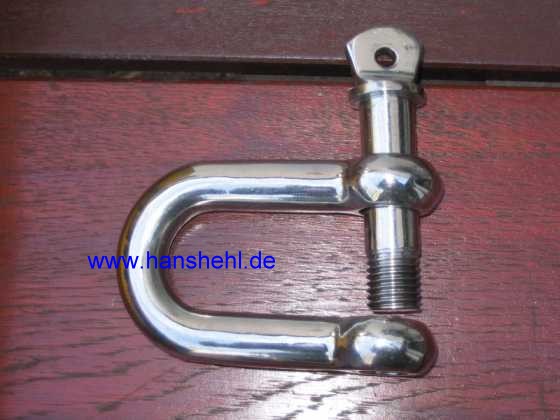 Die 19 mm starken Schäkel aus Edelstahl besitzen eine Bruchlast über 20 Tonnen. Sie werden bei zu kleinen Abschleppösen benötigt, wo die Schlaufe des Bergegurtes nicht hindurch geht. |