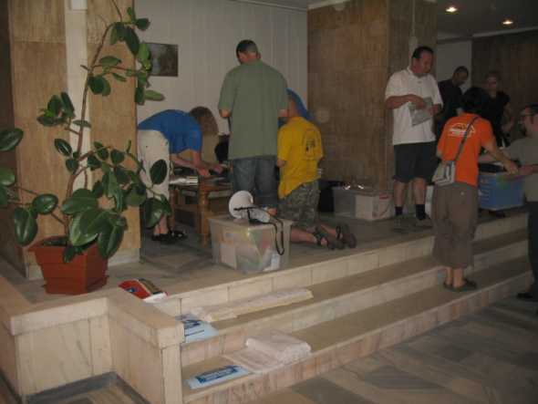 Ein Problem war auch das sehr schwache Handy-Netz im Basic-Camp. Die bewaldeten Hügel um das Camp bedingten ein Funkloch. Nur mit der Freisprecheinrichtung im Mercedes-Geländewagen (mit Verstärker) war das Telefonieren möglich. |