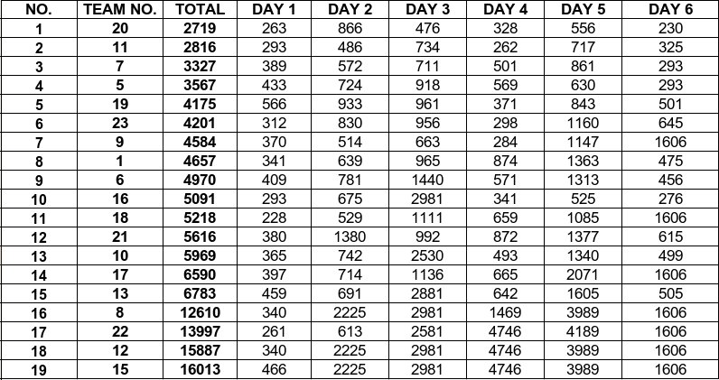 An den ersten zwei Tagen lagen beide Teams mit sehr geringer Fehlerpunktanzahl in der Gesamtplazierung weit vorne (siehe Punkteliste Team 22). Leider schied am dritten Tag der spanische Teampartner (Fernando Blasco / Nestor Gaona, Nr. 22A) wegen Turboladerschadens aus und damit fiel auch das deutsche Team (Felix Maxim / Robert Kelcso, Nr. 22B) laut Reglement aus der Wertung heraus. |