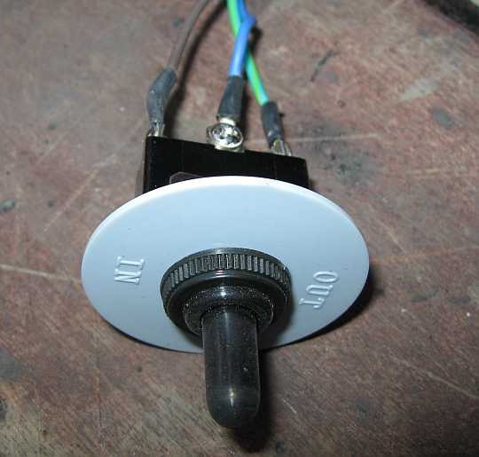Zur Sicherheit wird ein zusätzlicher Schalter mit Abdeckkappe und eine rote Kontrollleuchte eingebaut. Der Schalter verbindet die 12V-Leitung zur Steckdose der Fernbedienung. |