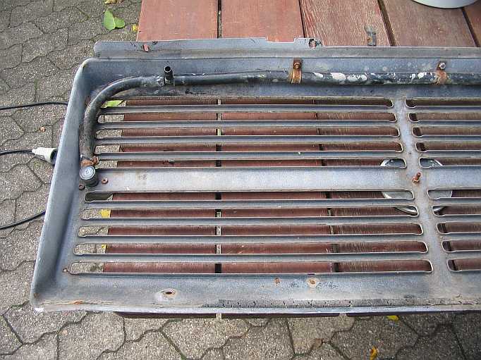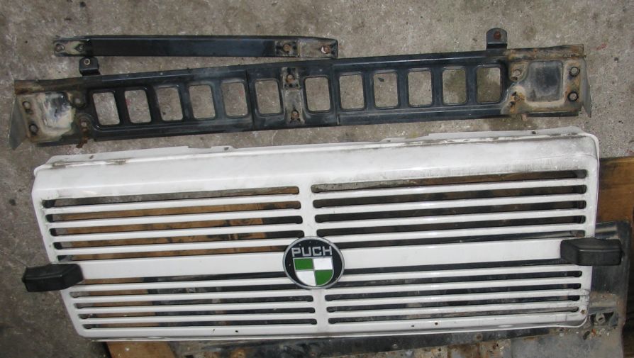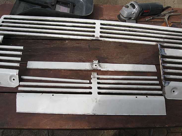 | 1. Umbau: Das Kühlergitter muß für die Seilwinde ausgeschnitten werden, da die Seilwinde sehr dicht am Kühler sitzt. | ![]() |