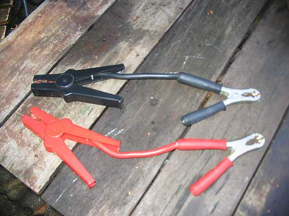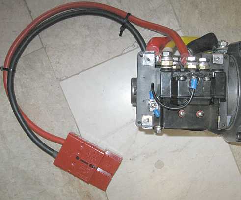 Zum ersten Test wird jetzt die Seilwinde provisorisch an die Batterie angeschlossen. Wenn die Seilwinde in Betrieb ist, empfiehlt es sich, den Motor laufen zu lassen.. |