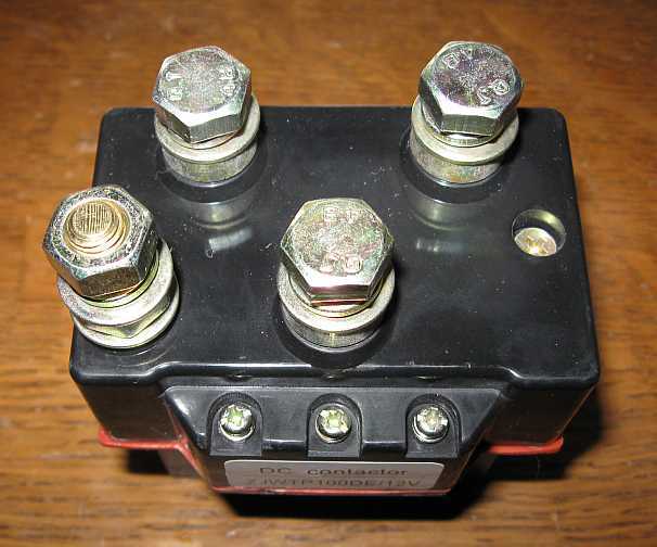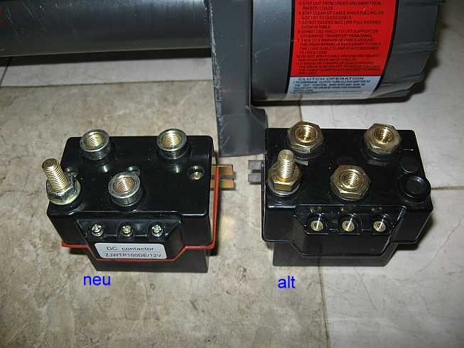 Bei der alten GEW10000-S waren es noch vier einzelne Relais für die Umschaltung der Drehrichtung. Bei der HSW9500 ist es eine kompakte Relaiseinheit (Nummer H0050-12V Winden Kontaktor, 400 Amp Dauerbelastung, 600 Amp Kurzzeitbelastung, mind. 1 Minute). |
