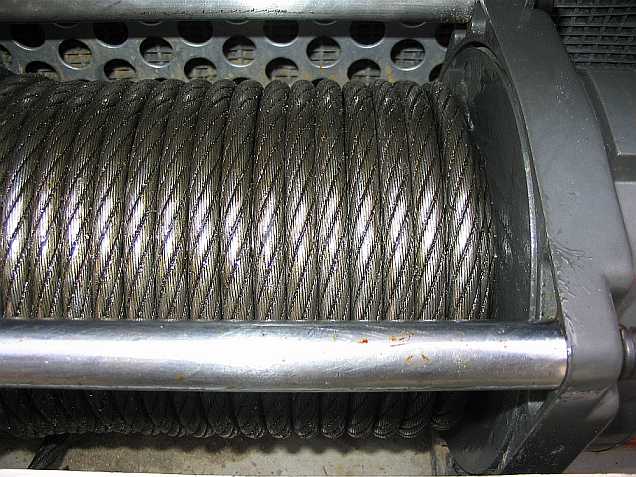 Die wesentlich biegsameren und leistungsfähigeren Python-Stahlseile 6 F+V der Westfälischen Drahtindustrie GmbH (WDI), vertrieben z.B. von der Fa. Lamm (www.lamm-seile.de), sind Ganzseil-hammerverdichtet, sodass die Litzenzwischenräume fast vollständig geschlossen sind. Eine glatte schmutzabweisende Oberfläche entsteht. Der Durchmesser kann bei gleicher Bruchlast geringer gewählt werden oder auf die Seiltrommel geht mehr Seil. Oder man hat bei gleicher Länge und Durchmesser wie beim Stahlseil eine höhere Bruchlast. |