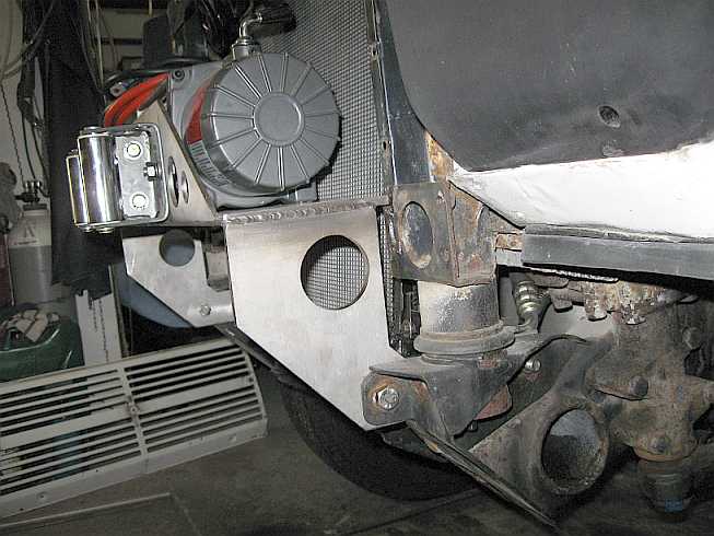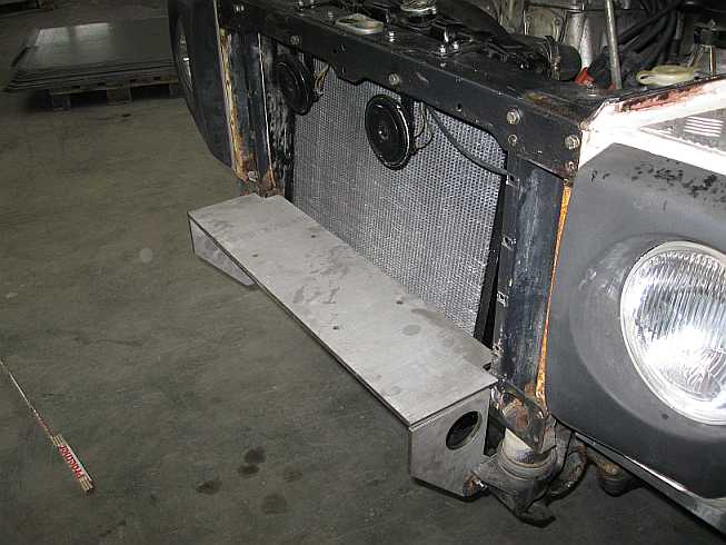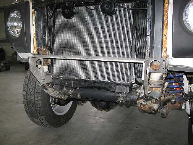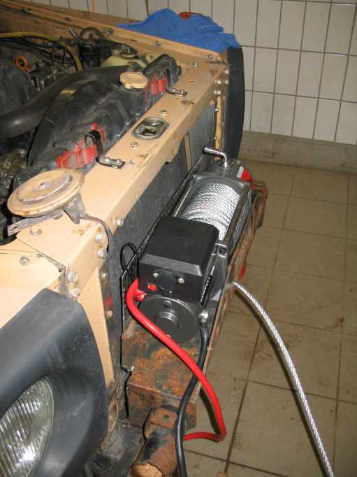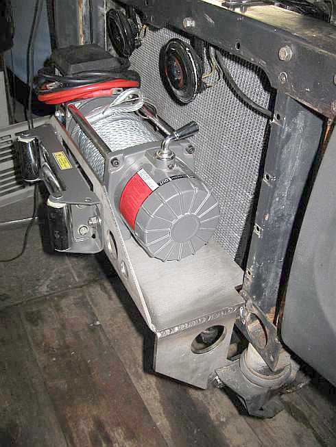 | Die Seilwinde passt genau in die Halterung und schränkt den Böschungswinkel nicht ein. Zum Kühler sind noch über 2cm Platz. | ![]() |