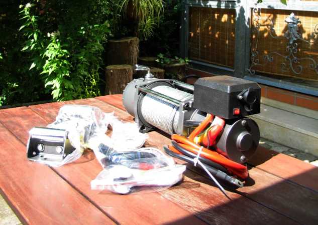 Zum Testen stellte mir im Frühjahr 2008 die Fa. Därr (München) die Winde HSW9500 zur Verfügung. Die Winde besitzt die üblichen Merkmale: Freilaufkupplung, automatische Bremse und Fernbedienung. Optional sind Funkfernbedienung und Umlenkrolle erhältlich. Im Vergleich dazu die neue Fast Seilwinde HSW Q 9500. Die Zuggeschwindigkeit ist mit 15 m /min doppelt so hoch, bedingt aber auch eine höhere Stromstärke von 400 Amp.. |