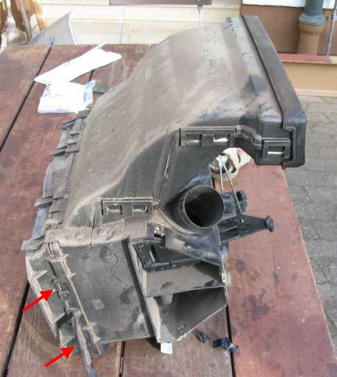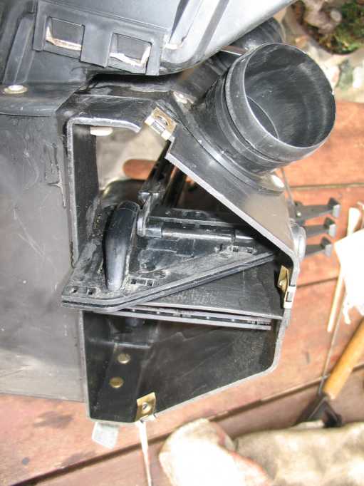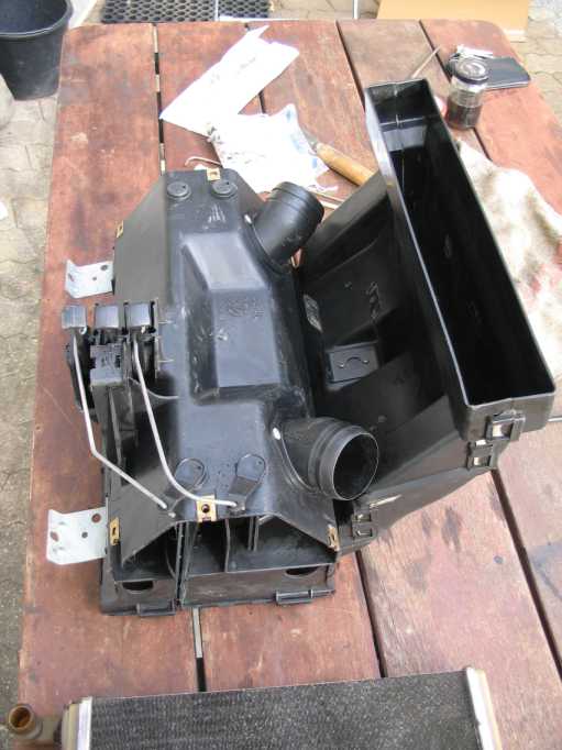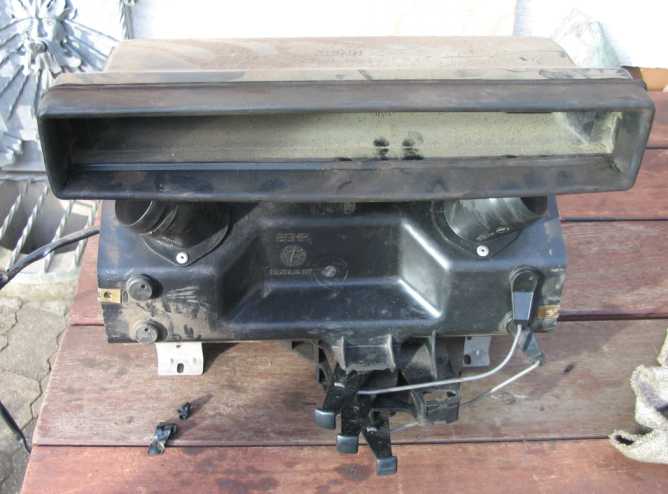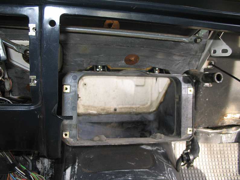 | Das ist die Luftöffnung für den Gebläsekasten, der mit 4 Schrauben befestigt ist. Dabei wurde auch noch einiges vom Armaturenbrettaufbau vereinfacht (servicefreundlich) siehe Armaturenbrett. | ![]() |