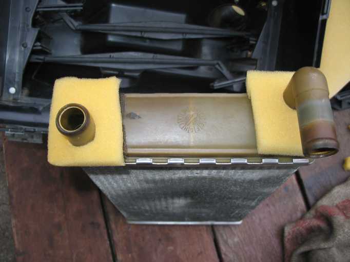 | Die Schaumstoffteile sind bröselig und werden erneuert. Den Wärmetauscher mit Pressluft reinigen. Der Hebelmechanismus der Heizungsregulierung sollte leichtgängig sein. | ![]() |