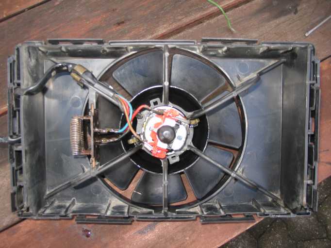 | Da die Widerstände sehr heiß werden, wurde der Widerstandsblock im Luftstrom des Lüfters angeordnet. | ![]() |