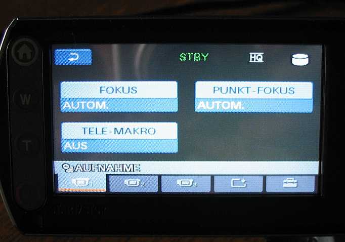 | Man muß die automatische Fokuseinstellung im Menue "Optionen" auf "Manuel" und "Unendlich" einstellen, was durch ein "Landschaftssymbol" angezeigt wird. | ![]() |