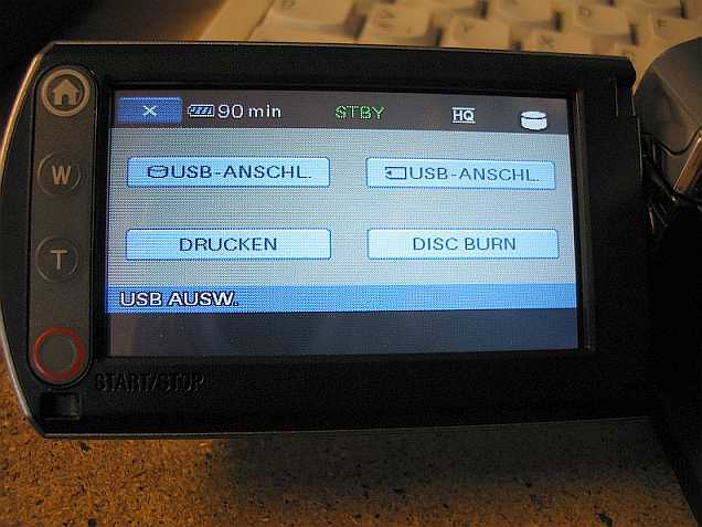 | Der eingeschaltete Camcorder muss über USB an den PC angeschlossen sein. Über den Bildschirm des Camcorders wird die USB-verbindung ausgewählt. | ![]() |