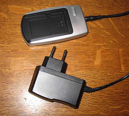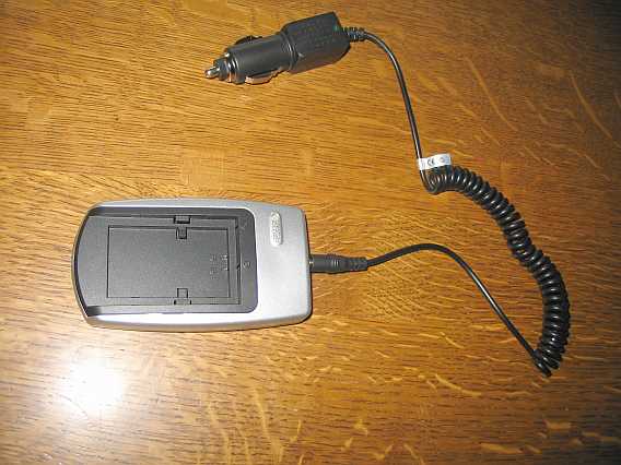 | Im Zubehörhandel gibt es von Fa. blumax ein Ladegerät für externe Akkus des Camcorders. Der AC-Adapter (230V) liefert 12V Gleichspannung (1A). Das Ladegerät benötigt diese 12V Gleichspannung und liefert 8,4V/1A für den Akku. Der Kfz-Adapter hat eine Eingangsspannung von 12-24V und eine Ausgangsspannung von 12V. | ![]() |