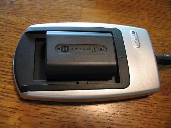 | Von Sony gibt es einen DC Car Battery Adapter, Nr. DCC-L50B mit 8,4 V, 1,5A zum Betrieb des Camcorders, ca. 91 Euro bei Fa. Amazon. | ![]() |