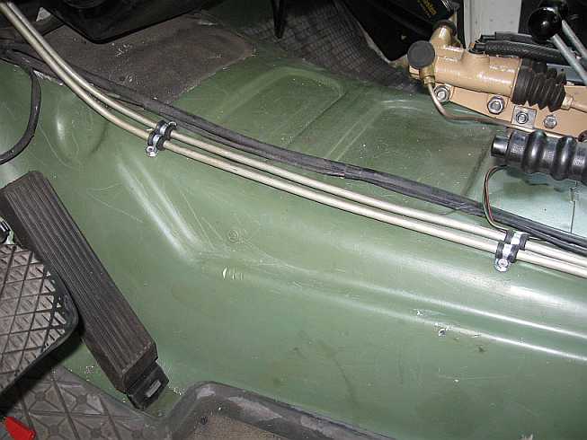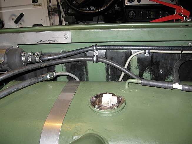 Tankleitungen: ![]() Die Benzinleitungen werden mit Schellen an der Trennwand befestigt. So werden Scheuerstellen vermieden. |