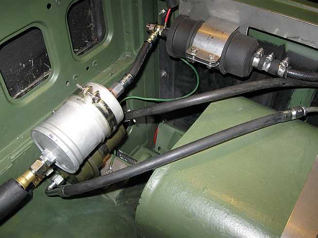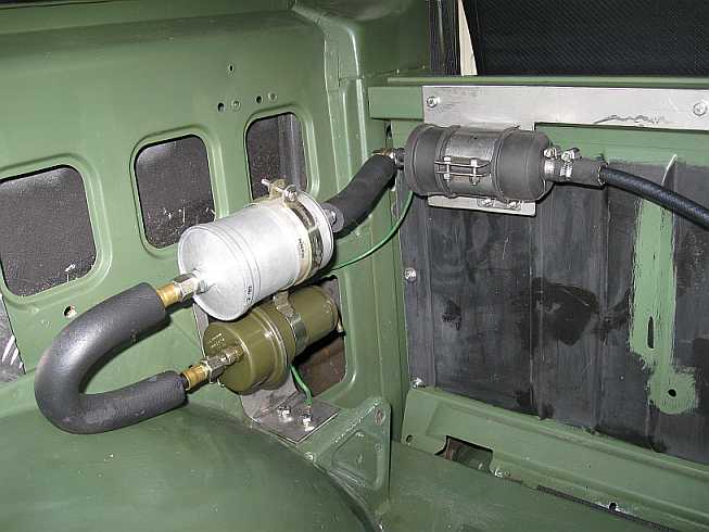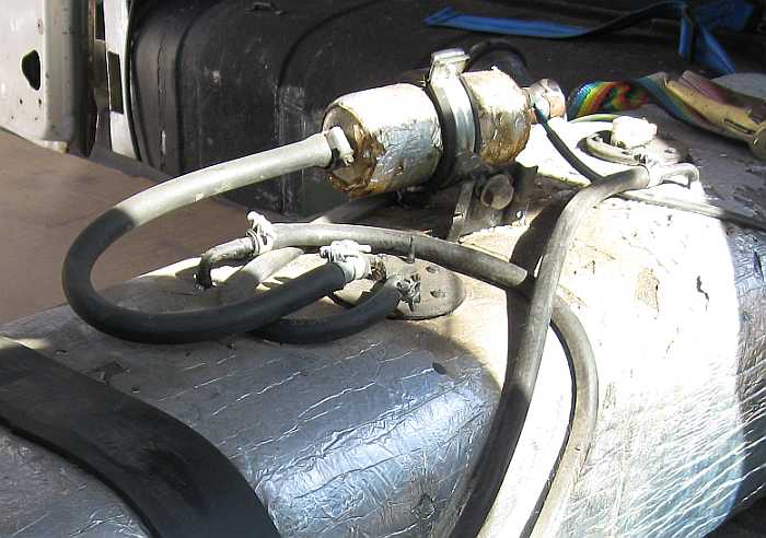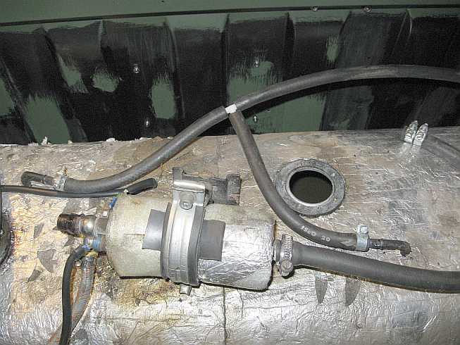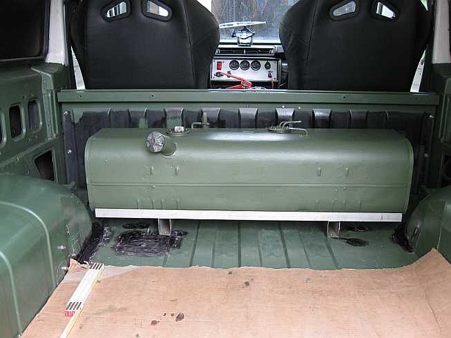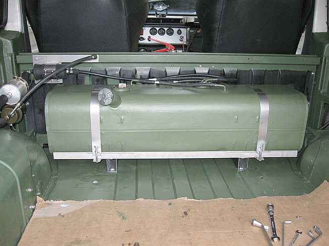 Übersicht: ![]() Die Vorbesitzer hatten in den 280GE einen 65-Liter-Innentank hinter der Trennwand mit Toyota-Tankgeber, Entlüftungsleitungen, Ansaugstutzen mit Filter und Benzinpumpe eingebaut. |