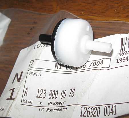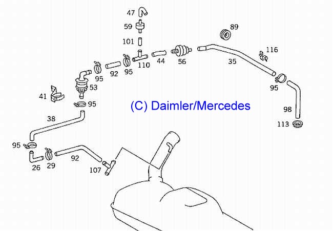 | Eingebaut sind ab Werk ein Schwerkraftventil (A0004761632 - 13,66 Euro ohne MwSt.), ein Belüftungsventil (Lufteintritt: A1238000078 - 5,82 Euro ohne MwSt.) | ![]() |