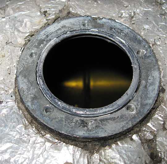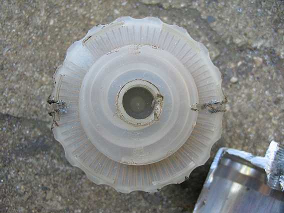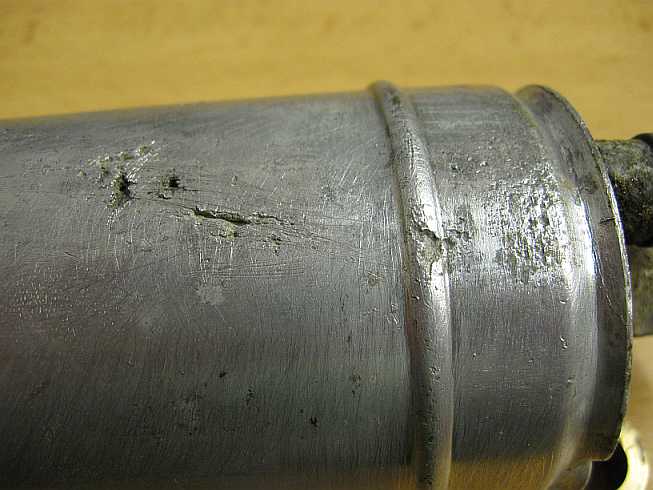 | Nachdem der Schaumstoffschutz der Pumpe entfernt ist, zeigt sich Lochfraß im Aluminiumgehäuse auf der Unterseite. Ich habe die Pumpe mit Flüssigmetall abgedichtet und als Ersatzteil aufgehoben. | ![]() |