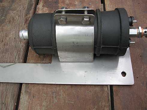 Pumpenmontage: Die Pumpe wurde nach der Revision des Innentanks und Einbaus eines Catchtanks auf die linke Seite an der Rückwand versetzt. Eine Edelstahlhalterung ist recht stabil. Aber...... |