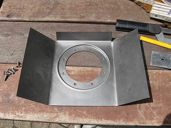 | Mit einer Metall-Stichsäge wird die Öffnung (84 mm) etwas kleiner ausgeschnitten. | ![]() |