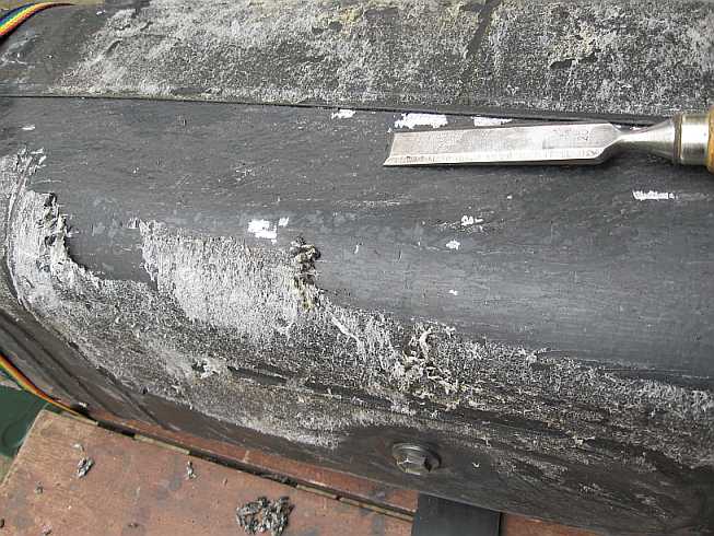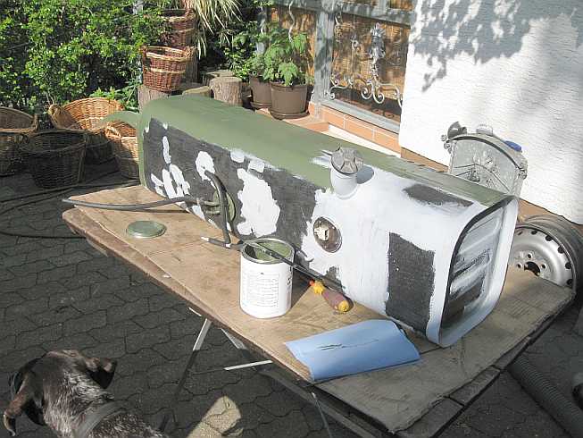 Tanküberholung: ![]() Zunächst wird mal der Innentank überholt. Dazu muss diese komische Schaumstofffolie weg. Leider kann sie nur abgekratzt werden, verschiedene Lösungsmittel sind nicht geeignet. |