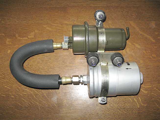 Pumpenmontage: Da die Pumpe an der Trennwand befestigt war, wurden die Laufgeräusche unangenehm hörbar, als die umgebaute Auspuffanlage wesentlich leiser war. Die Trennwand wirkte als Resonanzverstärker. Auch die Montage der Grundplatte mit Silentblöcken brachte keine Besserung. Erst als ich die Pumpe ohne Befestigung probeweise in Verpackungsschaumstoff einwickelte, war Ruhe. Ich besorgte mir nun flammhemmenden Schaumstoff (www.schaumstoff-lager.de) und isolierte die Benzinpumpe und die Vorförderpumpe. Jetzt hört man nur noch die Uhr ;) |