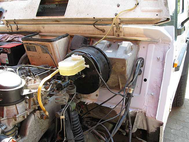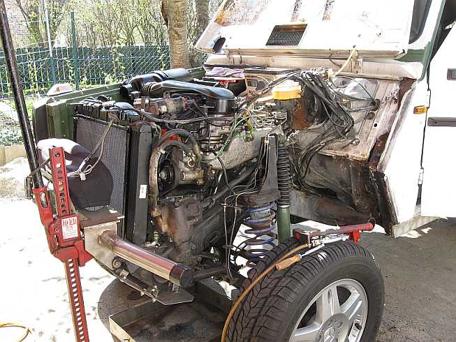 | Bei der Tranilvania-Trophy 2009 war der Motorraum mit Schlamm verdreckt. Er konnte seitlich zwischen Rahmen und Spritzwand zum Motor gelangen.