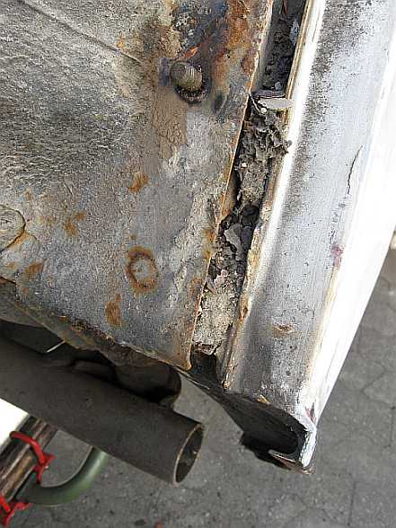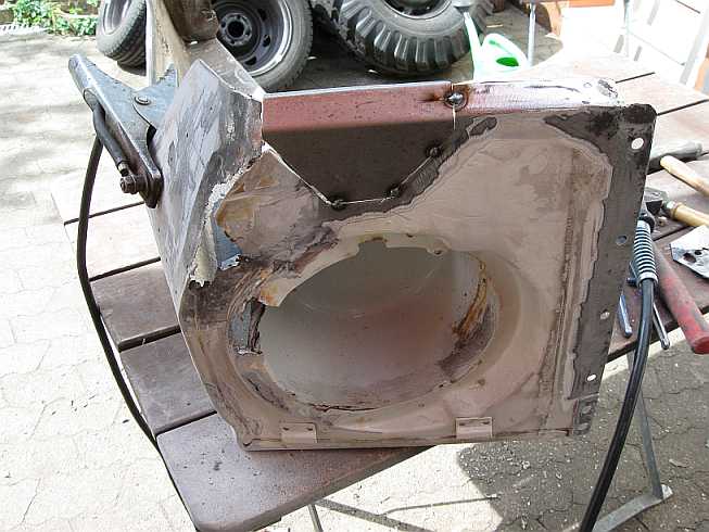 | Die verrosteten Blechteile werden mit der Flex bzw. Säge ausgeschnitten. | ![]() |