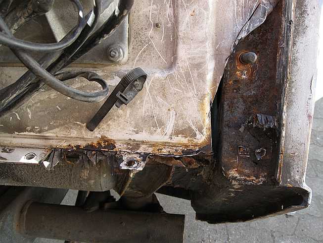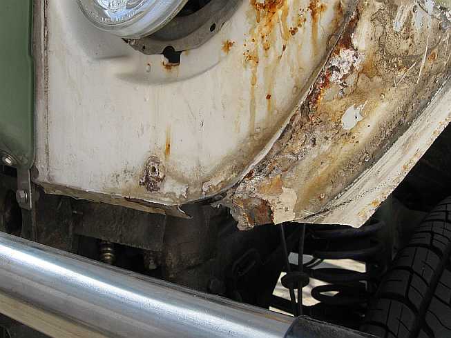 Die weggeschnittenen Teile müssen nicht entrostet werden. Auch von der Kotflügelverbreiterung kann ein Teil weg. |
