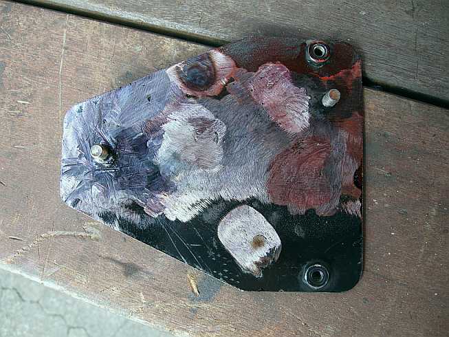 | Darunter zeigte sich, dass die Vorbesitzer die Rostlöcher großflächig mit Epoxyharz überdeckt hatten. | ![]() |