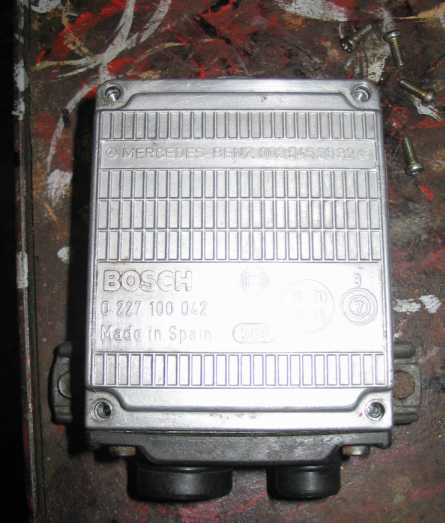 Beim 280GE Bj. 1984, Motor M110, wird die kontaktlose und ruhestromfreie Transistorzündanlage TSZ8u, A0025452632 (Bosch Nr. 0-227-100-042) ohne Vorwiderstände verwendet, siehe Abschnitt 1.3. Der Vorgänger TSZ4 hatte zwei Vorwiderstände mit 0,4 und 0,6 Ohm für die Zündspule. |