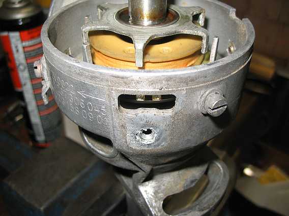 Der Verteiler A0031580901, Bosch: 0237306045) beim 280GE besitzt eine Unterdruck- und Fliehkraftverstellung für den Zündzeitpunkt. |