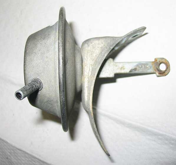 Die Verstellung des Zündzeitpunkts auf frühere Zündung im Teillastbereich erfolgt durch Unterdruck über eine Kunststoffleitung vom Anschluss am Drosselklappenstutzen zur Unterdruckdose am Zündverteiler. Im Leerlauf wird kein Unterdruck angezeigt. Beim Gasgeben im Teillastbereich bildet sich ein Unterdruck von fast -560 mbar, der beim Volllastbereich wieder geringer wird. Das Messgerät dazu ist hier beschrieben. |