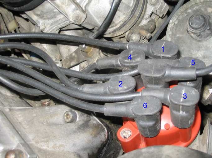 Länge der Zündkabel (insgesamt 4,3 m): Zyl.1: 475 mm, Zyl.2: 565 mm, Zyl.3: 685 mm, Zyl.4: 745 mm, Zyl.5: 855 mm, Zyl.6: 975 mm Zündkabelsatz: |