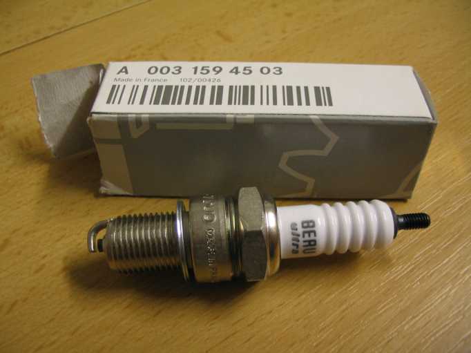 Zündkerzen mit Flachsitz gibt es von Bosch (A0031591203) oder Beru (A0031594503). Der Elektrodenabstand beträgt 0,8 mm bei einer neuen Zündkerze( AP15.10-P-1580G ). |