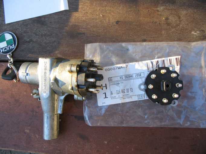 Zur Sicherheit erhält das Lenkungsschloss einen neuen Zündschalter (A1164620093). Der Zündschalter ist beim 240GD und 280GE gleich. |