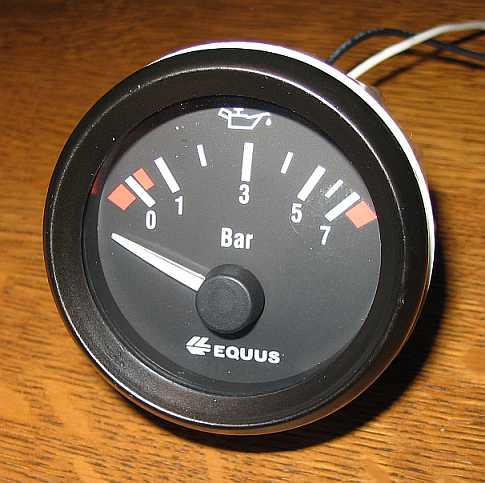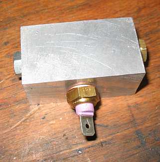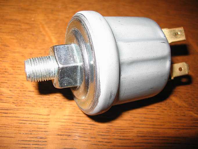 Öldruckmesser (Conrad Electronic) mit Geber 1/8-27 NPTF (mit Warnkontakt): Artikel-Nr. 842095-62. Für den Geber ist auf dem Ölfilter nach oben wegen der KA-Jetronik kein Platz, er muß mit einem Winkeladapter seitlich angeschraubt werden. |