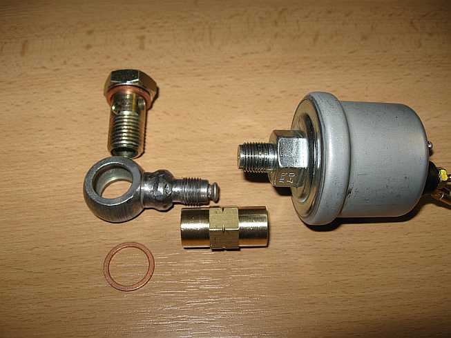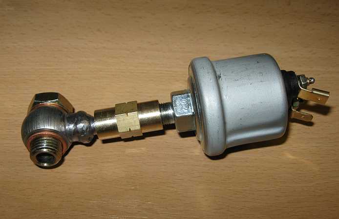 Ölsensor und Öldruckgeber sind nun eine Einheit. Aber die Anzeige bleibt weiter zu niedrig. Der Ölthermostat im Ölfilter macht nicht auf. Eine Messung mit Digitalthermometer und langem Draht-Sensor ergibt aber auch nur 75 Grad in der Ölwanne. Auch ein neues Ölfiltergehäuse mit Thermostat ergibt die gleichen niedrigen Temperaturen. Y-Adapter mit M10x1 oder 1/8-27 NPTF-Gewinde gibt es bei Fa. EZT-Autoteile.de |