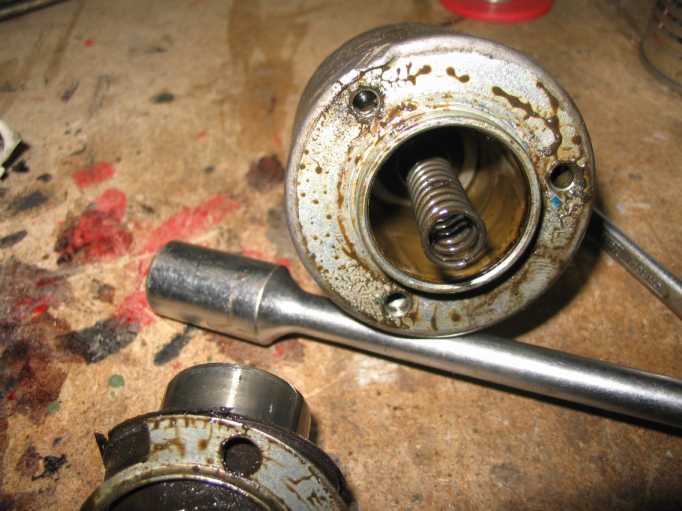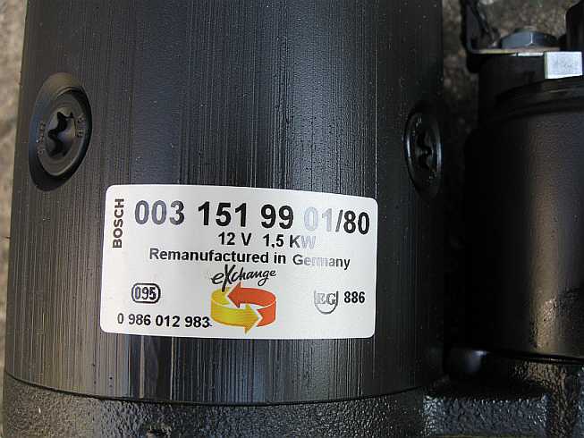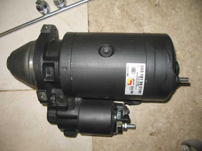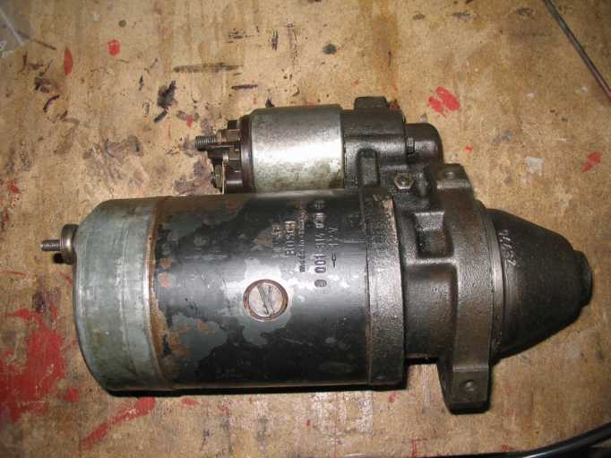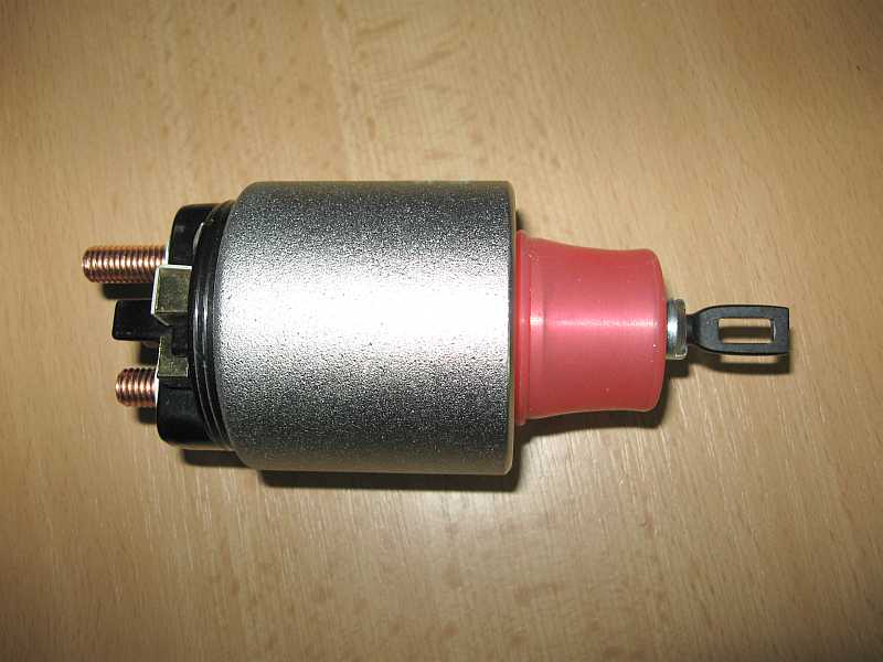 | Der neue Anlasser (Austauschaggregat) wird außen mit Wachs konserviert, aber das Ritzel und die Achse nicht gefettet, nur geölt. Durch die Hitzeentwicklung vom Krümmer (trotz Hitzeschild) würde das Fett verhärten und das Ritzel schlecht zurückgleiten. |