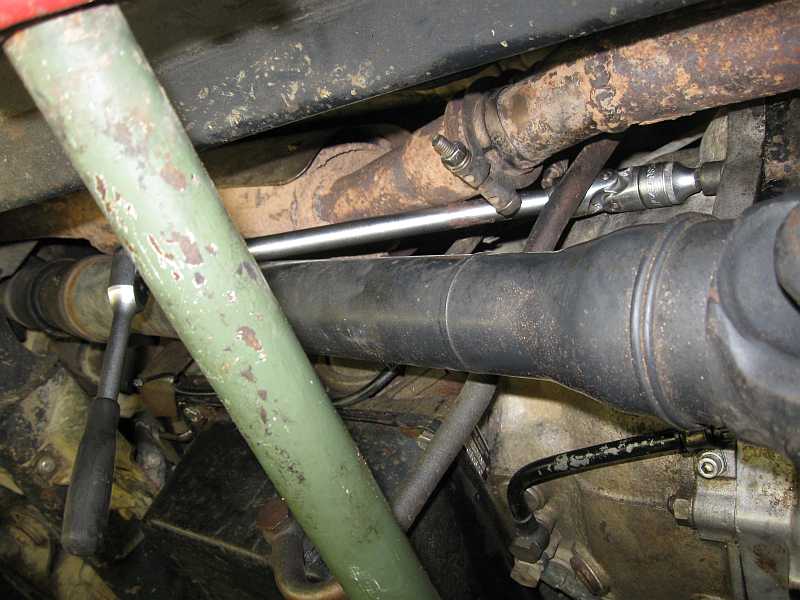 | Man glaubt es kaum, aber bei der Hobby der Transilvania-Tropy TAT2010 hat die Kardanwelle/vorderes Gelenk das Hitzschutz-Blech des Magnetschalters am Anlasser verbogen/eingedrückt. Obwohl ich die längeren originalen Anschlagdämpfer am Federdom der Vorderfedern eingebaut hatte, federte die Vorderachse soweit durch. Anscheind sind die Stoßdämpfer/Federn zu weich. Allgemein hört man, dass die Hobby in Richtung Extrem mutierte (siehe auch die website von Rebeca, ROCO4x4.COM). | ![]() |