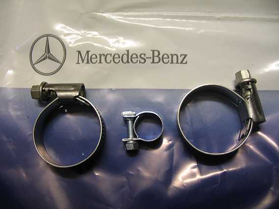 | Schlauchschellen: Schelle (Binder) 13 mm: A001-997-6990 - 1,10 Euro ohne MwSt. Schelle (20-32 mm): N000000 000667 - 1,40 Euro ohne MwSt. |