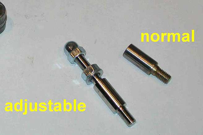 | G.J. Schreurs (www.ferrari400parts.com) hat einen Bolzen mit Einstellschraube fertigen lassen. Mit der Schublehre wird die Einschlagtiefe des alten Bolzen gemessen. Der neue Bolzen wird um 0,5 mm tiefer eingedrückt. Durch Anziehen der Mutter wird der nun zu niedrige Startsteuerdruck korrigiert. | ![]() |