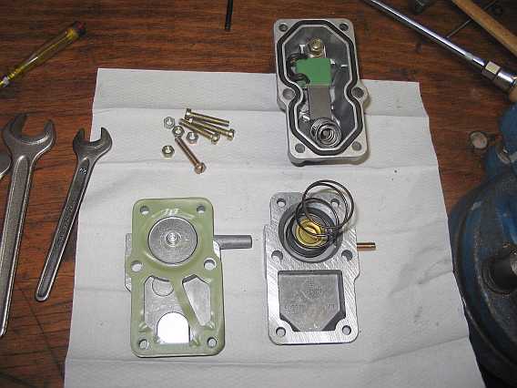 Wird nach einigen Minuten der maximale Steuerdruck von z.B. 3,7 bar nicht erreicht, sind die Federn durch Alterung gesetzt. Eine passende dünne Unterlegscheibe sollte das Problem beheben (wird noch getestet). |