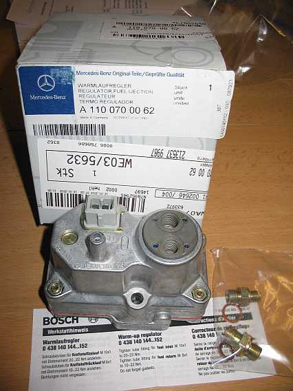Einige Warmlaufregler sind bei Mercedes seit 01.01.2010 bedeutend billiger geworden, z.B. 380SEC: A1160700362: 2009: 824,97 Euro o.MwSt, 2010: 505,00 Euro o. MwSt. oder 280GE : A1100700062: 2009: 502,20 Euro o. MwSt., 2010: 348,45 Euro o. MwSt. teurer ist z.B. der 0-438-140-010 -- F 026 TX2 105 -- A0000700362: 2009: 315,00 Euro o. MwSt., 2010: 445,00 Euro o. MwSt. Inzwischen fertigt Bosch automotive-tradition die Warmlaufregler nach, auch den Mengenteiler mit Luftmengenmesser. (Webshop partbob.com) |