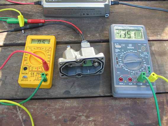 | Der angegebene Heizwiderstandswert beträgt 24 Ohm. Da im Test bei 13 V nur 450 mA fließen, hat er tatsächlich 28,9 Ohm). | ![]() |